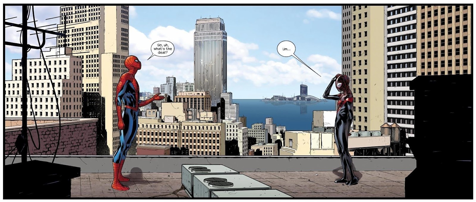 Dans ce récit, je pense qu’on ne peut pas en comprendre la portée à moins d’avoir lu les aventures de Miles Morales. C’est à mon goût une des plus belles rencontres que j’ai pu lire (j’ai regardé dans ma bibliothèque avant de dire ça !).