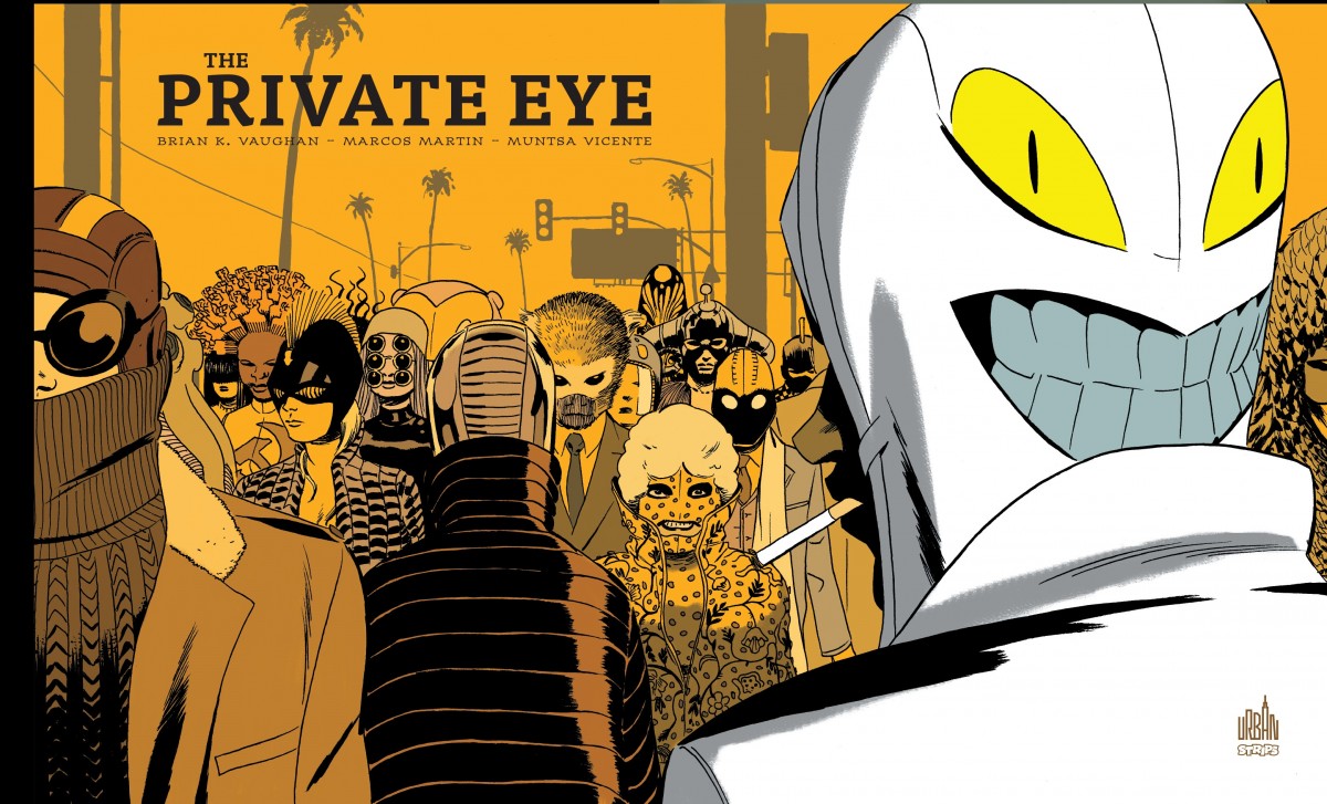 The Private Eye est un récit d'anticipation qui se déroule en 2076, après qu'un incident sur "le Cloud" ait dévoilé tous les secrets de tout le monde. De fait, internet n'existe plus et les gens se baladent masqués dans la rue. On suivra dans ce futur pas si lointain un jeune journaliste non licencié, qui se retrouvera dans une mystérieuse conspiration. La particularité de The Private Eye est d'avoir d'abord été publié au format numérique via Panel Syndicate, chaque numéro étant proposé à prix libre aux internautes, et dans un format drm-free (c'est-à-dire, sans gestion de droits numériques). Une inititative révolutionnaire pour cette industrie et qui a participé à son succès.