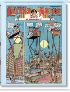 Éditer les planches grand format de ce strip paraissant dans la presse du 19e siècle est une aventure assez compliquée et beaucoup de tirages sont chers ou épuisés. Delcourt a sorti une superbe édition traduite en grand format restauré et Taschen propose une édition intégrale à 150 euros. MAIS avec un best-of à 60 euros très bien fait avec des introductions, du texte critique et 200 planches choisies parmi les plus représentatives. Seul point faible de cette belle initiative : les textes des planches sont en anglais mais toute la partie critique et intro est en français. Vous l’aurez compris avoir accès au fond McCay relève de la chasse au trésor mais quand on a les planches sous les yeux c’est un vrai bonheur.