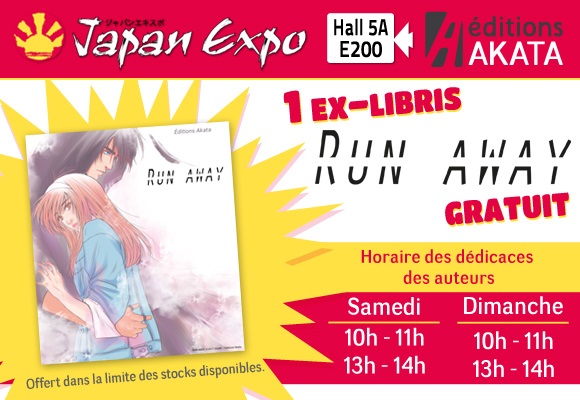 En effet, Akata nous a expliqué que Run Away sortira sous la forme d'un one-shot de 300 pages au format de 127 x 180. Une jolie édition dont les auteurs viendront vous parler à la Japan Expo.