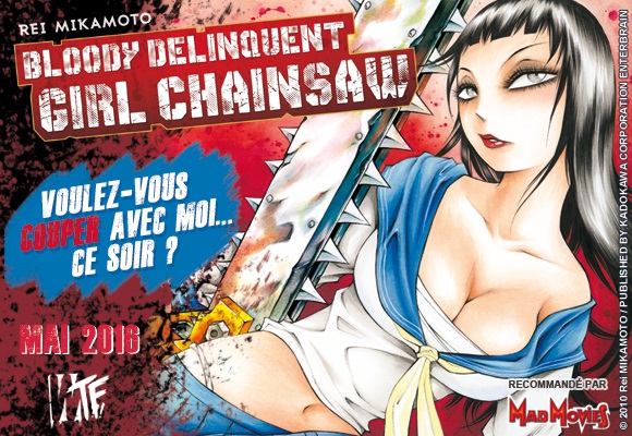 Le titre débarquera chez Akata le mois prochain, prenant le relai de la série Magical Girl of the End, qui a réduit sa cadence il y a peu. A noter également, Bloody Delinquent Girl Chainsaw sera bientôt adapté au cinéma du côté du Japon. Une première bande-annonce est même déjà disponible :