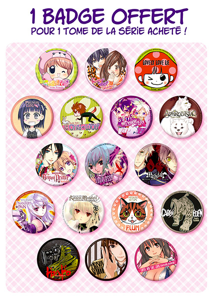 Ainsi, pour l'achat d'un manga, vous aurez son badge correspondant. Pour deux mangas, si l'un de ceux-ci fait partie des cartes postales proposées, vous repartirez avec cette dernière. Afin pour trois mangas, qu'importe lesquels, un poster sera offert.
