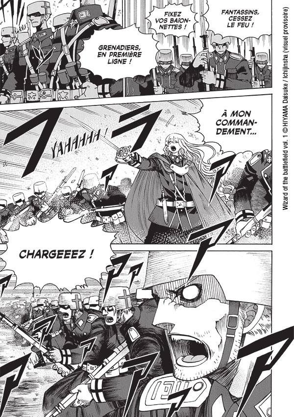 Le mois suivant, nous découvrirons Wizard of the Battlefield, une série actuellement en cours au Japon qui est écrite par Daisuke Hiyama. Elle présente une guerre de tranchées façon Première Guerre Mondiale mais où la magie a encore cours.