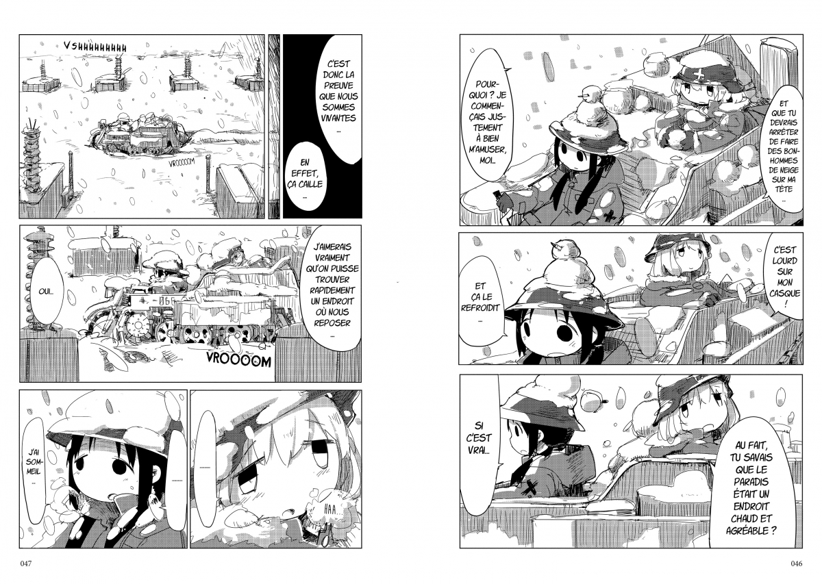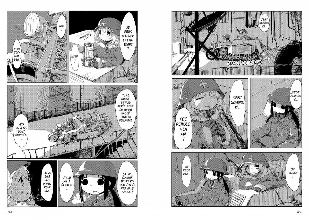 Si ce nom vous dit quelque chose, c'est normal : Girls' last tour a été adapté en anime en octobre 2017, la série est disponible en France sur Wakanim. L'oeuvre offre un contraste saisissant entre le character design des personnages, mignon et plutôt minimaliste, et le propos assez sombre. Au Japon la série, terminée, compte six tomes. En France le premier volume comptera 160 pages et est prévu pour le 6 février prochain.