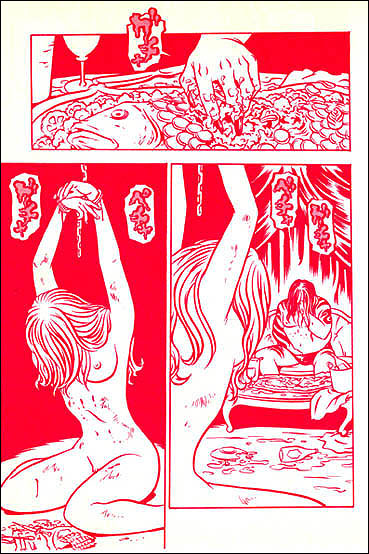 Paul McCarthy est un plasticien controversé qui aime aborder des univers où le malaise et la crasse font mouche. Il aime présenter des œuvres très référencées, soit par le monde automobile, soit par la sphère télévisuelle, soit, encore, par les déviances de sa chère patrie : les USA ! Kaneko possède lui aussi ce don pour le craspec et les exagérations en tout genre. Peuplant ces mangas de freaks, de monstres humains mais aussi de moteurs et d'armes à feu. Car c'est bien ce qui passionne les deux artistes : Esthétiser l'inesthétique, glorifier l'inexcusable, béatifier l'inabordable. D'un point de vue pictural, les auteurs se rejoignent également. Usant d'une caricature physique et morale de la société et de ses acteurs, nous y retrouverons des personnages aux têtes gonflées, aux yeux exorbités, aux défauts prépondérants, aux bouches boursouflées...Comme une mise en avant des défauts de la société... Leurs univers respectifs sont riches de références, sont populaires, voire même populistes, tant ils tentent de mettre en exergue les points négatifs qui les obnubilent ! Nous retrouvons donc, dans les deux œuvres, un espèce de paradoxe moral tout simplement génial !