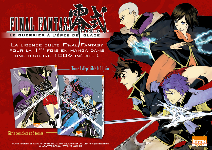En effet, Ki-oon vient d'annoncer qu'ils sortiraient le 11 juin le premier tome de Final Fantasy Type-0 : Le Guerrier à l'Epée de Glace, la préquelle du jeu de Square Enix en cinq volumes. Premier manga tiré de la licence de JRPG à arriver en France, il est réalisé par Takatoshi Shiozawa et est surtout supervisé par Tetsuya Nomura, le créateur des personnages.