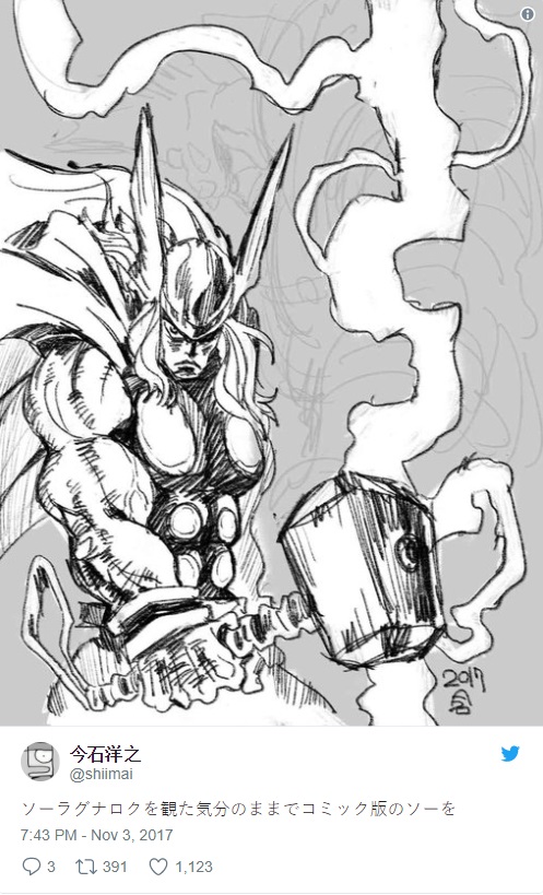 Les frontières entre le monde du manga et celui du comics sont plus minces qu'on se l'imagine ! En octobre on vous parlait des super-héroïnes de DC dessinées par Masashi Kudo l'auteur de Bleach. C'est au tour de Hiroyuki Imaishi, le réalisateur entre autres de Kill la Kill et Gurren Lagann, de ré-interprêter les univers de comics. Sur son compte twitter, l'auteur s'est fendu de chouettes dessins en hommage à Wonder Woman et à Thor.
