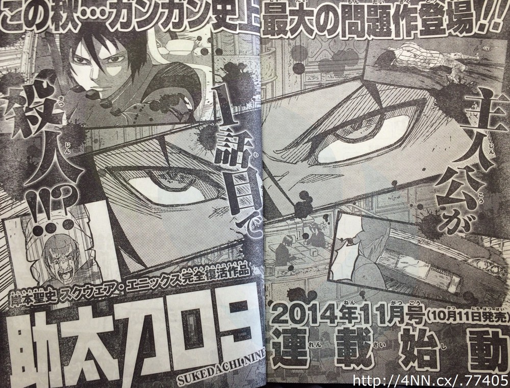 À l'occasion de la sortie du nouveau numéro de Shonen Gangan, principale revue de prépublication de Square Enix, nous apprenons que Seishi Kishimoto va se lancer dans une nouvelle série, Sukedachi Nine, à partir du 11 octobre prochain.