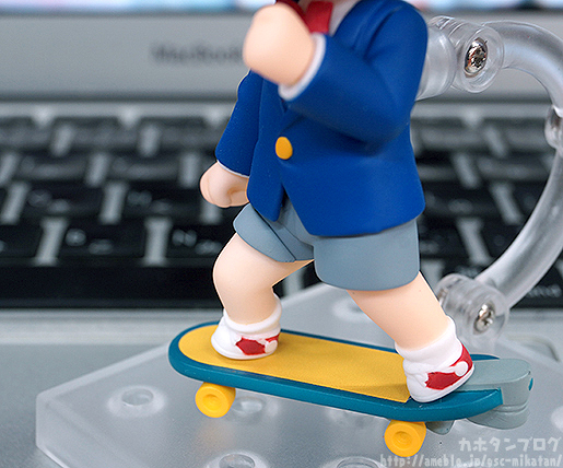 Il sera livré avec pas moins de trois visages alternatifs, des paires de bras, ainsi que son fameux skateboard. Une version exclusive au Good Smile Shop vous offrira en accessoire un phylactère Ba-Ro (diminutif de Baka Yaro).