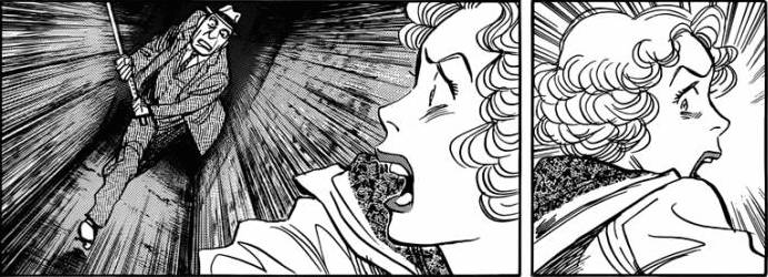 Là où se tome se révèle indispensable et marque une véritable étape dans la continuité de la série, c'est qu'il présente un bouleversement. Le genre d'événement dont je ne peux malheureusement pas parler ici, tellement le retournement de situation est énorme, mais qui montre bien que Urasawa ne se pose aucune limite et fait ce qu'il veut de son histoire. Si Billy Bat nous avait déjà habitué aux surprises et aux retournements de situation, ce qui se passe ici redéfinit la vision que l'on peut avoir de la série à grande échelle. On sent que d'un coup, on rentre dans une nouvelle ère, alors même que nous avons été habitué à voyager d'époque en époque. Un changement qui nous fait rentrer dans une dimension qui dépasse les personnages et montre bien les ambitions globales du scénariste (enfin des scénaristes, puisque Urasawa est aidé ici par Takashi Nagasaki). D'ailleurs, ce n'est sans doute pas pour rien que nous découvrons ici beaucoup de réponses sur la nature même des chauves-souris. Le récit va s'accélérer et donner de nouvelles clés au lecteur pour pouvoir désormais verser plus tranquillement vers le pan métaphysique du manga, sans pour autant en oublier des personnages qui sont toujours écris aussi justement.