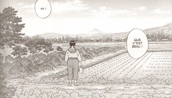 Par ce moment climatique qui n'aura pas lieu, Taniguchi et sa co-scénariste Miwako Ogihara, montrent comment l'intrigue va se construire, par l'absence. L'absence de mots tout d'abord, le discours est ici réduit à sa portée effective, le reste étant bien plus puissamment exprimé par les jeux de regards, les instants suspendus et un silence lourd de sens. L'absence de grandes montées dramatiques aussi. L'auteur avoue dans la même interview en postface que c'était chez lui un désir, ce qui se remarque très bien au fil des pages de sa BD. L'existence est marquée d'événements forts, d'épisodes qui vous définissent, mais difficile de ressentir sur toute une vie une montée dramatique. Si cela se défend d'un point de vue intellectuel, il faut reconnaitre que narrativement c'est assez étrange. On reste dans un état proche du détachement réfléchi, témoin d'une vie frugale et dure, sans pour autant en être affecté. Même par les événements les plus durs qui sont pourtant nombreux ici.