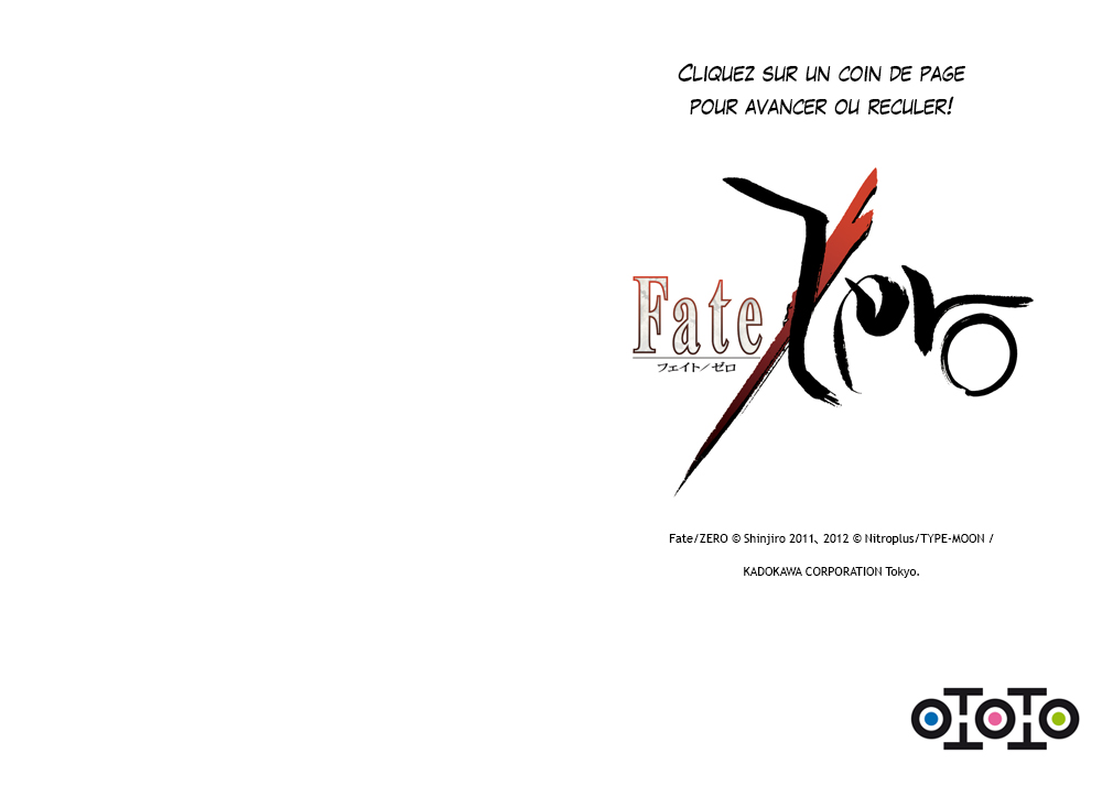 Voilà le programme de ce qui vous attend avec Fate/Zero, un seinen sur lequel Taifu-Comics compte beaucoup et qui passe en ce moment même au contrôle technique de la rédac', avant une critique qui devrait pointer le bout de son nez Vendredi au plus tard ! En attendant, découvrez les 35 premières pages du titre, en galerie !