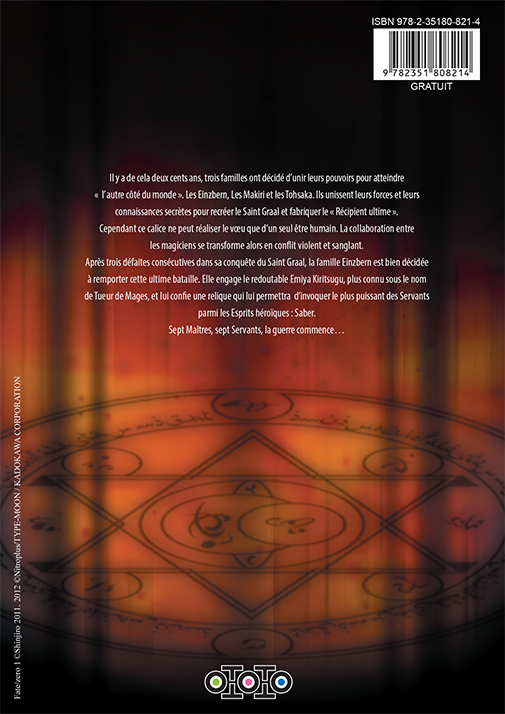 La Guerre du Saint Graal... Une bataille royale ultime opposant sept magiciens élevés au rang de Master. A leurs côtés l'Esprit héroïque d'un combattant légendaire invoqué sous la forme de Servant. Leur seul but est de s'emparer du Saint Graal qui réalisera n'importe lequel de leurs voeux... Kiritsugu Emiya, plus connu sous le nom de Tueur de Mages, se jette à corps perdu dans la bataille, accompagné de son servant de classe Saber... Le rideau se lève sur le passé mystérieux de la guerre Sainte !