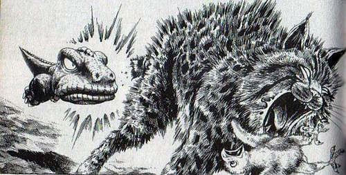 C'est donc avec un plaisir non dissimulé que nous nous sommes jetés dans la lecture de la réédition proposée par Pika. D'une part, parce que la première édition de Gon réalisée par Casterman est aujourd'hui introuvable à des prix raisonnables, mais surtout parce que nos souvenirs des aventures du dinosaure solitaire nous avaient laissé un souvenir marquant.