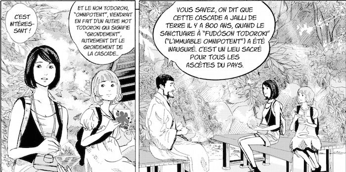 Côté dessin, les planches se partagent entre les personnages, au design fin et un peu rétro, qui apportent l'émotion, et une reproduction plus réaliste, presque photographique, des lieux visités. Le résultat est un peu froid, mais accentue le côté guide, comme une invitation à venir savourer ces décors de nos propres yeux.