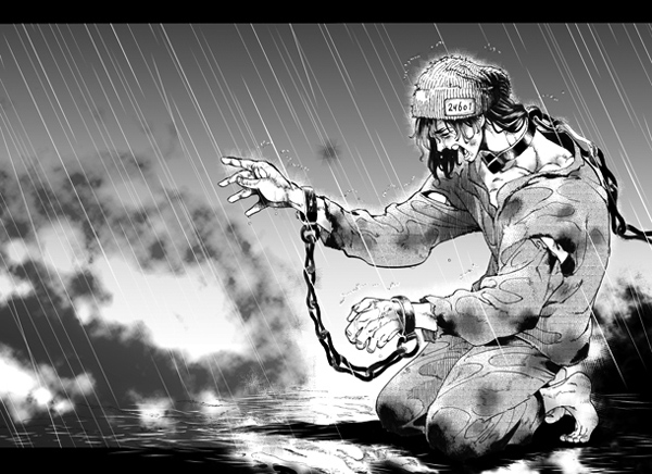 Ainsi, ne vous attendez pas à retrouver mot pour mot la plume si particulière de Victor Hugo, le titre effectuant un petit voyage à faire pâlir Bilbo et les plus grands amateurs de Franponais, France - Japon - France. Mieux, Arai se paye le luxe d'offrir une préquelle 100% badass au classique dramatique qu'est Les Misérables. On y découvre la jeunesse de Valjean avant d'être enfermé au bagne pour une petite faim qui lui coûtera dix ans de sa vie, tandis qu'il tente de s'échapper façon Ninja et qu'il multiplie sa masse corporelle par deux ou trois dans un chapitre qui sens bon le training montage façon Rocky. C'est too-much, on est pas loin du Jean Valjean qui colle des high-kicks aux troupes de Napoléon mais l'auteur retient toujours son récit et préfère la métaphore dessinée à la réelle envolée.