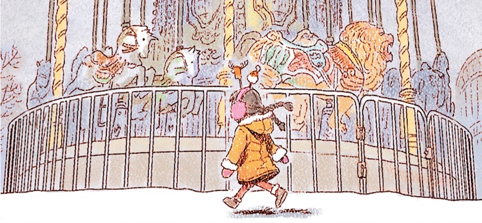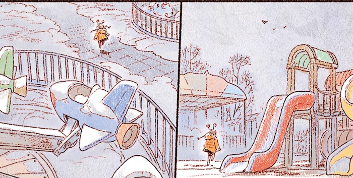 Tout en restant assez simple, le trait du dessinateur est plutôt joli et délicat, s'attachant à rendre avec réalisme la beauté de ce qui l'entoure au fil de ses promenades. On sent qu'il progresse au fur de ses notes. On regrettera cependant un choix de colorisation qui manque de finesse, surtout à cause de la texture qu'il y ajoute. Même si cet effet évoque la neige ou la pluie qui règnent sur les pages, il enlève aussi malgré tout à la délicatesse de l'ensemble. Ces petites notes n'en restent pas moins visuellement remplies de poésies, comme des invitations à découvrir nous aussi le beau dans ce qui nous entoure et que l'on oublie trop souvent de regarder.