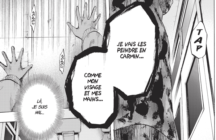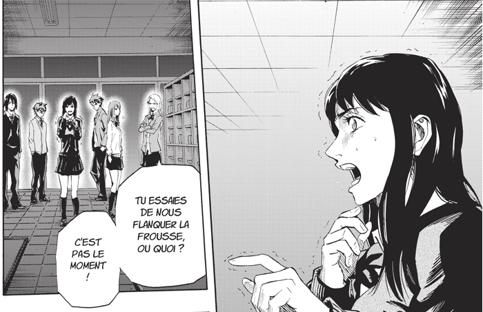 Re/Member est l'adaptation d'une série de romans de Welzard. Même si l'histoire n'a rien de nouveau, le récit est bien construit, et prenant. Sans aller dans la complexité et dans les univers très réussis de TONOGAI Yoshiki (Secret, Judge...), il ne cède pas non plus au côté érotico-malsain d'un King's Game, pour rester dans la comparaison avec d'autres titres de l'éditeur. Même si les relations entre les personnages et la psychologie de chacun sont assez basiques, c'est finalement un atout pour un titre où l'horreur et le sentiment de danger imminent doivent prédominer. La Rouge-Sang est un monstre efficace, et l'idée pourtant un peu tirée par les cheveux de devoir chercher des bouts de corps dans un lycée fonctionne assez bien. En fait, la narration évoque une partie de jeu vidéo en équipe, et cette manière de mettre en scène crée une tension intéressante. Sans trop entrer dans les détails pour ne pas spoiler, le rythme du récit, sa construction, et le fait que l'histoire soit racontée du point de vue d'Asuka nous donnent l'impression de participer nous-même à des parties de jeu rapides où stratégie et travail en équipes sont nécessaires, mais où les réactions de chacun sont imprévisibles. Ce rythme effréné est tempéré par des moments plus calmes, où les différents personnages se trouvent hors de danger. Ils peuvent interagir et réagir à ce qui s'est passé.