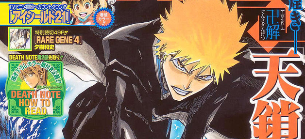 Histoire de bien commencer le nouveau millénaire, le Jump va dévoiler coup sur coup deux des séries qui vont lui permettre de continuer à survoler un paysage éditorial qui se délite peu à peu. Ainsi, Tite Kubo publie le premier numéro de Bleach, qui va vite devenir la coqueluche des lecteurs du magazine, puis Eyeshield 21 qui va permettre de retrouver un shônen de sport de premier plan pour pallier à l'arrêt de Slam Dunk. Notons que c'est aussi à ce moment-là qu'ils vont créer la Jump Fiesta, convention entièrement consacrée aux publications du magazine et qui s'appuie sur le modèle des Comic Con qui est en train d'exploser outre-Atlantique. Surtout, cela montre le désir de la Shûeisha de se diversifier devant des ventes qui ne décollent plus et qui accusent un sacré coup avec les sites de scantrad qui permettent d'avoir les séries du magazine trois jours avant qu'il sorte.