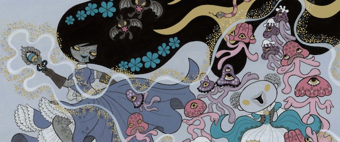Elle revient cette fois-ci avec le conte Ravina the Witch ? publié sous le label Venusdea. Entre le livre illustré et la bande dessinée, Ravina est un récit décalé aussi drôle que poétique (mais réservé à un public averti), où une sorcière malgré elle découvre le monde qui l'entoure. Les planches sont toutes plus belles et étranges les unes que les autres. Ce livre, c'est comme si on avait mixé un conte ancien et les aventures d'une magical girl. Cocktail improbable et pourtant savoureux.