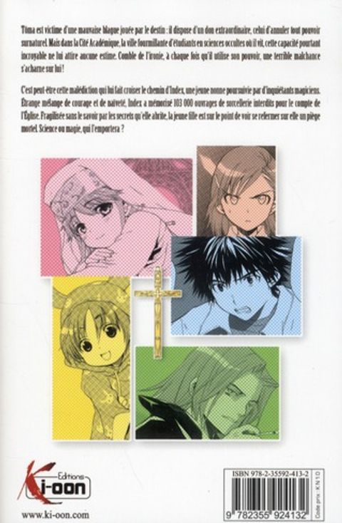 Tôma est victime d’une mauvaise blague jouée par le destin : il dispose d’un don extraordinaire, celui d’annuler tout pouvoir surnaturel. Mais dans la Cité Académique, la ville fourmillante d’étudiants en sciences occultes où il vit, cette capacité pourtant incroyable ne lui attire aucune estime. Comble de l’ironie, à chaque fois qu’il utilise son pouvoir, une terrible malchance s’acharne sur lui ! C’est peut-être cette malédiction qui lui fait croiser le chemin d’Index, une jeune nonne poursuivie par d’inquiétants magiciens. Étrange mélange de courage et de naïveté, Index a mémorisé 103 000 ouvrages de sorcellerie interdits pour le compte de l’Église. Fragilisée sans le savoir par les secrets qu’elle abrite, la jeune fille est sur le point de voir se refermer sur elle un piège mortel. Science ou magie, qui l’emportera ?