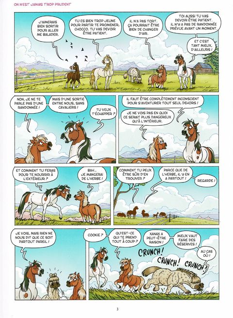 Notre groupe de poneys se retrouve libre d'avancer à leur rythme, sans contrainte... et sans cavalier ! Encore faut-il se mettre d'accord sur le bon itinéraire. Ce sera l'occasion de découvrir des vues à couper le souffle, le calme des petits villages, la joie des balades en forêt et des virés shopping en centre-ville. Autant de situations dans lesquelles ils ne manqueront pas de nous faire rire.