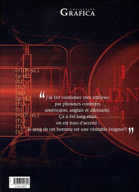 Trois valeurs sûres de la BD - Makyo (Qumran, Balade au bout du monde), Rocco (Le Décalogue, tome 5) et Toldac (pilier du journal Spirou) - ont uni leurs forces pour un thriller scientifico-médical. Un laboratoire découvre sur un sac à main du sang qui ne peut provenir d'un humain. Il faut en retrouver la source. Ensuite, tout s'emballe...