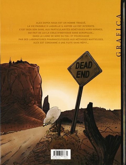 Une chasse à l'homme à couper le souffle !n café perdu dans les décors grandioses de l'Ouest des États-Unis est attaqué par deux hommes masqués qui massacrent tous les témoins du drame. Les policiers arrivés sur les lieux sont surpris par la résistance d'un client qui malgré trois balles dans le ventre est toujours en vie et récupère rapidement. Le docteur FLEMING qui le soigne à l'hôpital de Tucson découvre que le sang de l'inconnu possède des particularités étonnantes. Il vend sa découverte à PORTER, patron peu scrupuleux des laboratoires pharmaceutiques Biolab. L'angoisse de la chasse à l'homme recommence pour ALEX qui jusqu'alors vivait heureux aux côtés de ses amis indiens. Seul aux commandes de ce nouveau cycle, Bruno Rocco plonge son héros dans une intrigue mouvementée et riche en surprises.