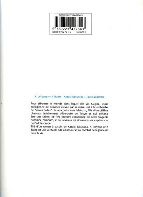 Pour affronter le monde dans lequel elle vit, Nagisa, jeune collégienne de province élevée par sa mère, est à la recherche de ""vraies balles"". Sa rencontre avec Mokuzu, fille d'un célèbre chanteur fraichement débarquée de Tokyo et qui prétend être une sirène, lui fera prendre conscience de cette tragédie nommée ""amour"", et lui révélera les douloureuses expériences de l'adolescence. Tiré d'un roman à succès de Kazuki Sakuraba, A Lollypop or A Bullet est une véritable ode à l'amour et au combat de la jeunesse pour la vie.