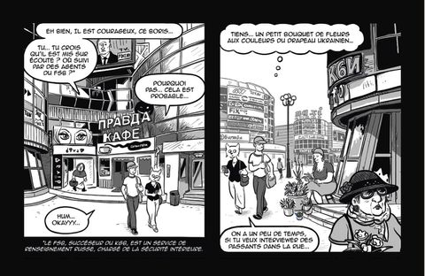 Fin juin 2022, alors que les télévisions de l’aéroport de Dubaï annoncent les dernières avancées russes en Ukraine, Nicolas Wild s’apprête à embarquer pour Saint-Pétersbourg. Si les frontières russes sont fermées aux journalistes occidentaux, la réglementation n'a pas changé pour les artistes. Équipé de son attirail de dessinateur et un poil stressé, l’auteur de <em>Kaboul Disco</em> part à la rencontre d’un peuple coupé du jour au lendemain d'une grande partie du monde.Durant deux semaines, accompagné d’une interprète, il ira à la rencontre d’un large panel de résidents russes : membres de la société civile, artistes, opposants politiques, militaires, expatriés et simples citoyens, tous passeront sous le crayon de Nicolas pour exprimer leurs vues sur la guerre en Ukraine et la situation de leur pays.Parfois amusant, parfois triste voire inquiétant mais toujours instructif, <em>À quoi pensent les Russes </em>est un album nécessaire qui offre un contrepoint saisissant sur la situation aux frontières de l’Europe, et qui dresse le portrait juste et sans détour d’un peuple divisé, qui approuve ou subit la dérive autoritaire de ses dirigeants.
