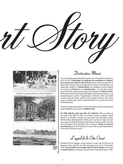 A Short Story retrace avec un souci du détail sans précédent la vraie histoire d'Elizabeth Short, plus connue sous le pseudonyme du Dahlia Noir, qui avait quitté son Massachusetts natal pour s'installer à Los Angeles, envisageant une carrière de star hollywoodienne. L'histoire et les dialogues, écrits d'après les documents déclassifiés du FBI, retrace la vie de cette jeune femme perdue dans Hollywood, en particulier les 3 mois qui ont précédé son horrible assassinat, et repose sur les témoignages recoupés de gens l'ayant connue et côtoyée. De son séjour au Figueroa Hotel avec Marjorie Grahams, à l'incident des trois de San Diego, un récit méticuleusement documenté, loin des clichés habituels sur une figure féminine dont on pensait tout connaître.
