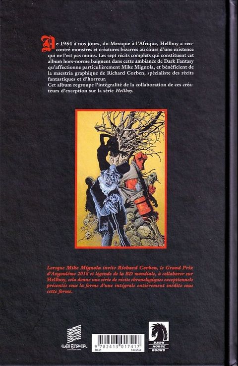 De 1954 à nos jours, du Mexique à l'Afrique, Hellboy a rencontré monstres et créatures bizarres au cours d'une existence qui ne l'est pas moins. Les sept récits complets qui constituent cet album hors-norme baignent dans cette ambiance de Dark Fantasy qu'affectionne particulièrement Mike Mignola, et bénéficient de la maestria graphique de Richard Corben, spécialiste des récits fantastiques et d'horreur. Cet album regroupe l'intégralité de la collaboration de ces créateurs d'exception sur Hellboy.