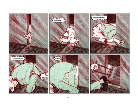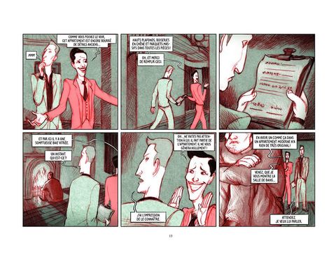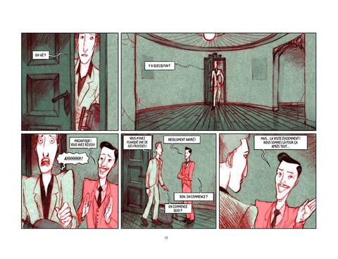 Un jeune homme élégant vient visiter une chambre à louer dans un appartement immense et classieux. La chambre est libre, l'affaire est vite conclue avec les autres locataires. Mais le nouvel arrivé découvre bien vite qu'il ne peut plus sortir... pas davantage que les autres occupants. La porte par laquelle il est entré semble condamnée, comme le sont les fenêtres, et toute autre issue. Ainsi commence "Abaddon", roman graphique de Koren Shadmi, jeune New-Yorkais d'origine israélienne, un cauchemar polymorphe, où l'auteur, dans un graphisme très personnel et fascinant, alterne le quotidien emmuré des cinq protagonistes et les cauchemars du héros, hanté par des images de guerre. Est-il victime d'une machination infernale, ou bien en proie à la folie ? Quel est le lien entre ses récurrentes visions guerrières et sanglantes et ses quatre très étranges colocataires, dont aucun ne semble vouloir regagner le monde extérieur ?