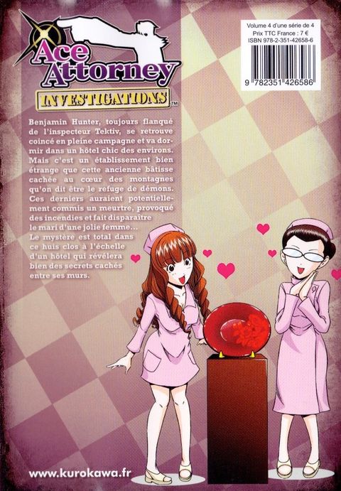 ""Retrouvez enfin les aventures du célèbre procureur de talent en manga ! Dans cette série adaptée du jeu vidéo, Benjamin Hunter et l'inspecteur Dick Tektiv résolvent les affaires les plus tordues lors de joutes verbales. Au programme : des aventures inédites, des personnages hauts en couleur, des plaidoiries à rebondissements. ""
