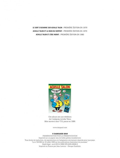 Collectionneur ou néophyte, retrouvez les précédentes aventures de Achille Talon (Int. Dargaud)