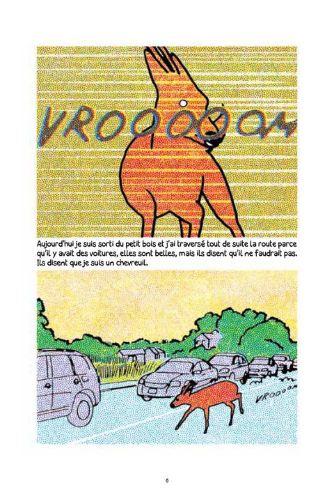 Un cadeau fait sur sa seule couverture (vivant assez près des chevreuils) un livre qui surprend, qui vous embarque là où on ne s'y attend pas avec un dessin assez particulier auquel j'ai bien adhéré. Un OVNI