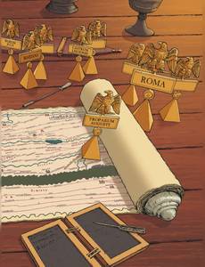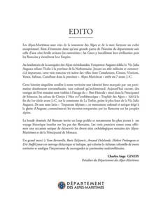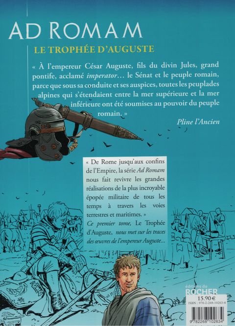 « À l'empereur César Auguste, fils du divin Jules, grand pontife, acclamé imperator... le Sénat et le peuple romain, parce que sous sa conduite et ses auspices, toutes les peuplades alpines qui s'étendaient entre la mer supérieure et la mer inférieure ont été soumises au pouvoir du peuple romain. » Pline l'Ancien. De Rome jusqu'aux confins de l'Empire, la série Ad Romam nous fait revivre les grandes réalisations de la plus incroyable épopée militaire de tous les temps à travers les voies terrestres et maritimes. Ce premier tome, Le Trophée d'Auguste, nous met sur les traces des oeuvres de l'empereur Auguste...