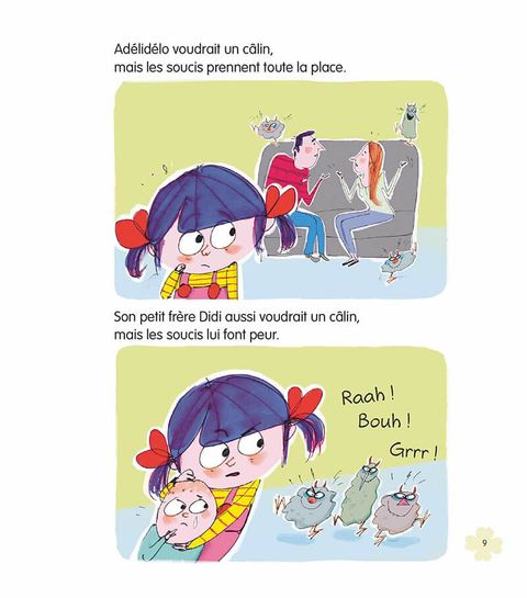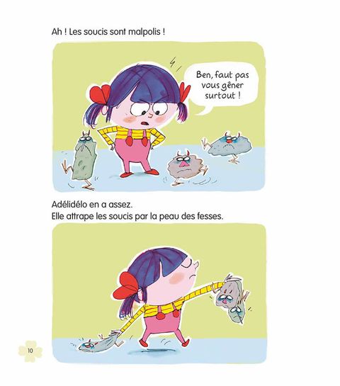 Adélidélo est une attachante petite fille d'aujourd'hui. Elle aime la vie, elle a la langue bien pendue, elle crie, elle pleure, et elle a toujours plein de bonnes idées pour se sentir bien... même quand ça ne va pas. Dans ce premier volume, sept épisodes dans lesquels Adélidélo fait la chasse aux soucis, se fait à l'idée d'avoir un petit frère, négocie avec la colère, la peur, et même l'idée de la mort. Bref, une grosse envie de vivre très communicative !