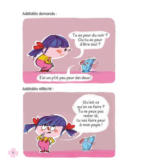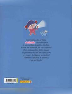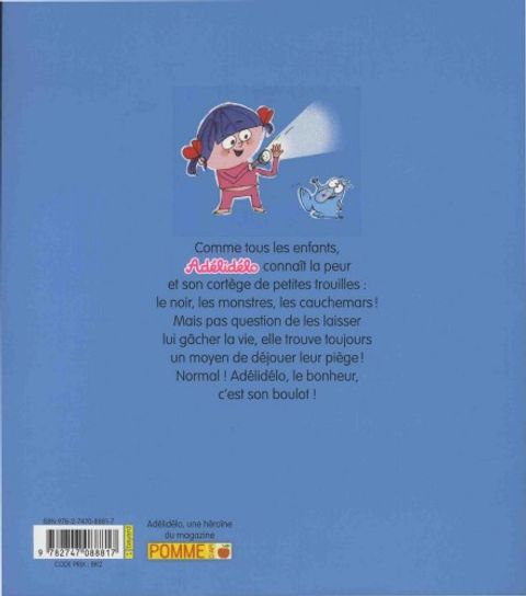 Comme tous les enfants, Adélidélo connaît la peur et son cortège de petites trouilles : le noir, les monstres, les cauchemars ! Mais pas question de les laisser lui gâcher la vie, elle trouve toujours un moyen de déjouer leur piège ! Normal ! Adélidélo, le bonheur, c'est son boulot !