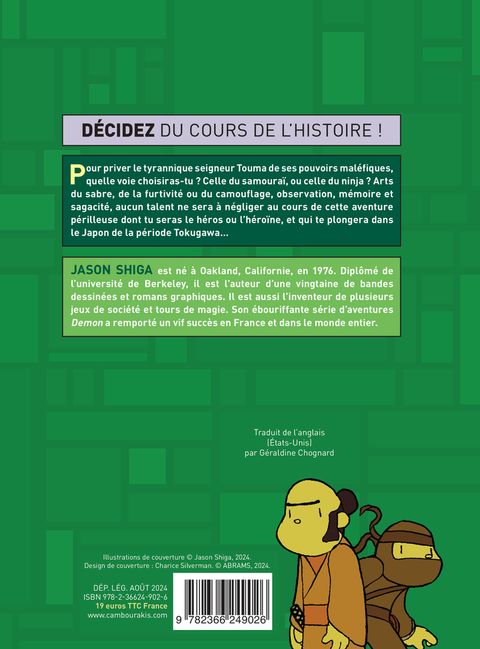 Après "Léviathan" et "L'Au-delà", voici le tome le plus réussi de la série de Jason Shiga dont vous êtes le héros. Cette fois, il s'agit de partir en quête d'un bracelet magique qui donne d'immenses pouvoirs à celui ou celle qui le porte. Car il est malheureusement tombé entre les mains d'un odieux mage noir... Aussi faudra-t-il découvrir l'âme de ninja ou de samouraï qui se cache en nous. Mais aussi réfléchir à ce qui fait la vraie valeur d'un guerrier ou d'une guerrière. Toujours ludique, impeccablement pensée et conçue, cette BD d'une grande inventivité est réellement passionnante.