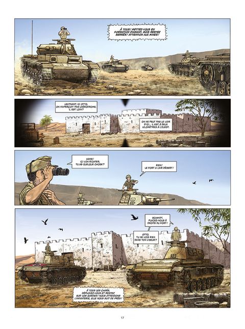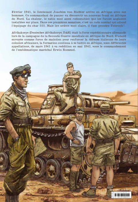 Afrikakorps tome 1 présente des illustrations magnifiques, avec une colorisation subtile qui s'adapte parfaitement à l'atmosphère désertique. C'est un récit très bien renseigné sur les équipements de l'époque. La vision des soldats allemands est très intéressante.
