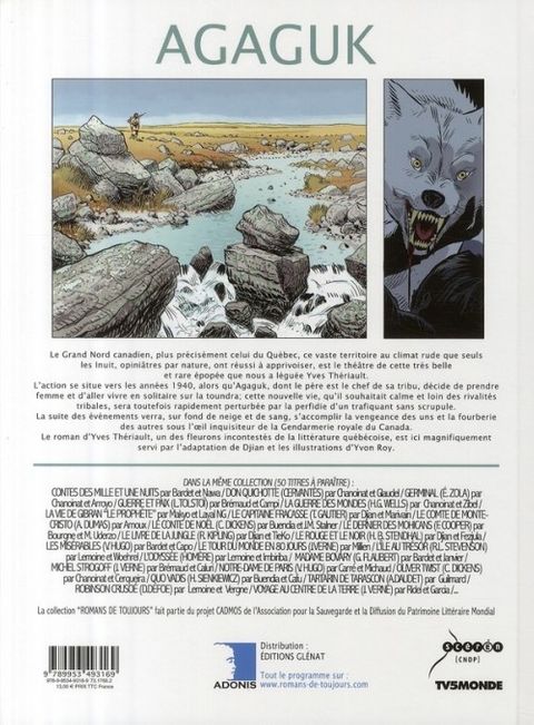 Le Grand Nord canadien, plus précisément celui du Québec, ce vaste territoire au climat rude que seuls les Inuit, opiniâtres par nature, ont réussi à apprivoiser, est le théâtre de cette très belle et rare épopée que nous a léguée Yves Thériault. L'action se situe vers les années 1940, alors qu'Agaguk, dont le père est le chef de sa tribu, décide de prendre femme et d'aller vivre en solitaire sur la toundra; cette nouvelle vie, qu'il souhaitait calme et loin des rivalités tribales, sera toutefois rapidement perturbée par la perfidie d'un trafiquant sans scrupule. La suite des événements verra, sur fond de neige et de sang, s'accomplir la vengeance des uns et la fourberie des autres sous l'oeil inquisiteur de la Gendarmerie royale du Canada. Le roman d'Yves Thériault, un des fleurons incontestés de la littérature québécoise, est ici magnifiquement servi par l'adaptation de Djian et les illustrations d'Yvon Roy.