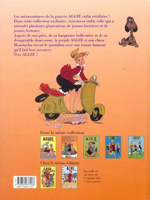 Véritable Cendrillon des temps modernes, Aggie est la fille du Capitaine Mack, absent du foyer la plus part du temps, et le souffre-douleur de sa cruelle belle-mère et de sa fille, Mona. A côté de cet enfer familial, Aggie peut compter sur une foule d'amis avec lesquels se nouent des intrigues amoureuses comiques et compliquées... Les Editions Vents d'Ouest proposent aujourd'hui de redécouvrir ou de découvrir "Aggie" en albums cartonnés respectant la présentation de leur publication d'origine. Une série qui vient s'inscrire dans la collection Classiques, en compagnie de "L'Espiègle Lili" et des "Pieds Nickelés", offrant au public la collection complète de ces grands classiques de la bande dessinée.