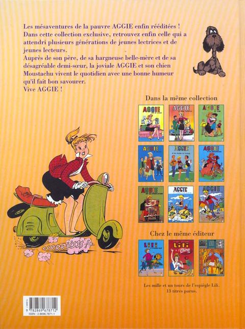 Véritable Cendrillon des temps modernes, Aggie est la fille du Capitaine Mack absent du foyer la plupart du temps, et le souffre-douleur de sa cruelle belle-mère et de sa fille Mona. A-côté de cet enfer familial, Aggie peut compter sur une foule d'amis avec lesquels se nouent des intrigues amoureuses comiques et compliquées... Les Editions Vents d'Ouest proposent aujourd'hui de redécouvrir ou de découvrir "Aggie" en albums cartonnés respectant la présentation de leur publication d'origine. Une série qui vient s'inscrire dans la collection Classiques, en compagnie de "L'Espiègle Lili", des "Pieds Nickelés" et de "Bibi Fricotin", offrant au public la collection complète de ces chefs-d'oeuvre de la bande dessinée.
