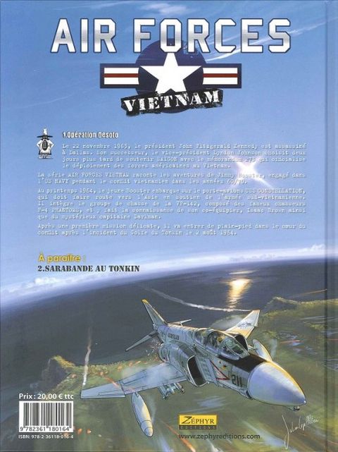 Le 22 novembre 1963, le président John Fitzgerald Kennedy est assassiné à Dallas. Son successeur, le vice-président Lyndon Johnson choisit deux jours plus tard de soutenir Saigon avec le mémorandum 273 qui officialise le déploiement des forces américaines au Vietnam. La série air forces Vietnam raconte les aventures de Jimmy Booster, engagé dans l'US Navy pendant le conflit vietnamien dans les années 60/70. Au printemps 1964, le jeune Booster embarque sur le porte-avions USS Constellation, qui doit faire route vers l'Asie en soutien de l'armée sud-vietnamienne. Il intègre le groupe de chasse de la VF-142, composé des fameux chasseurs F-4 Phantoms, et y fait la connaissance de son co-équipier, Isaac Brown ainsi que du mystérieux capitaine Darkman. Après une première mission délicate, il va entrer de plain-pied dans le coeur du conflit après l'incident du Golfe du Tonkin le 2 août 1964.