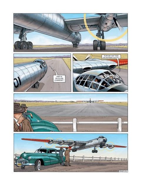 Avril 1948... L'unique prototype du bombardier géant Consolidated B-36 disparaît mystérieusement au cours d'un vol d'essai au-dessus du Golfe du Mexique. Au même moment, Jack Blues assiste, en compagnie de Rita Hayworth, au tournage du dernier film de John Ford, dans Monument Valley, lorsqu'un prototype d'aile volante se crashe à proximité. Or, les deux appareils participaient au programme du Strategic Air Command visant à remplacer la flotte de bombardiers nucléaires américains. La Hughes Aircraft Company et son emblématique patron, se retrouvent rapidement dans le collimateur du FBI, car soupçonné de vouloir remporter frauduleusement le marché. Chargés par Howard Hughes de résoudre cette délicate affaire, Jack et Big Bob Gunner, son indéfectible complice détective privé, accompagnés de la très sexy Jane, nièce de ce dernier, vont mener l'enquête. Des bas-fonds de Los Angeles au Colorado, en passant par New York et San Diego, sur fond de guerre froide et de maccarthysme, l'improbable trio, aidé de la belle et célèbre Rita Hayworth, va peu à peu découvrir une terrible machination visant la Hughes Aircraft...