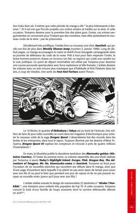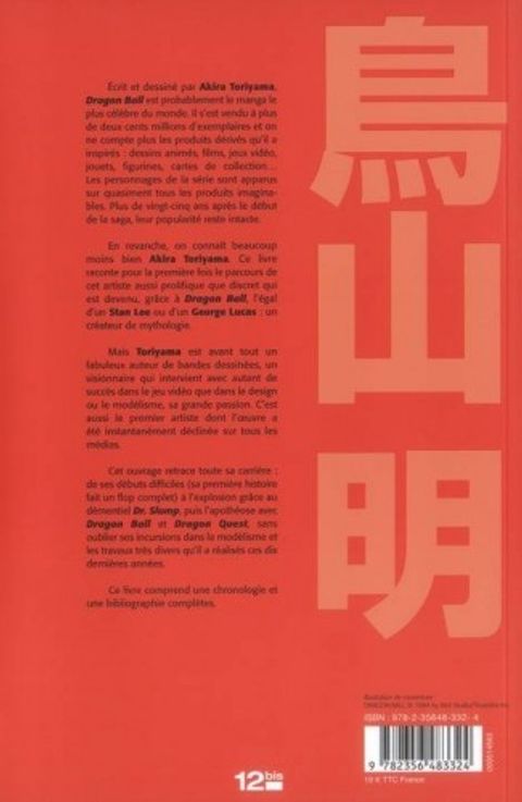 Tout le monde connaît Dragon Ball, le manga-phénomène vendu à plus de 200 millions d'exemplaires dans le monde et ses innombrables avatars : dessins animés, jeux vidéo, jouets, cartes de collection, films, etc. Bizarrement, jusqu'à ce jour aucun livre n'avait proposé de panorama complet de l'oeuvre de son auteur : Akira Toriyama. Né en 1955, Toriyama est pourtant devenu une véritable légende du manga et de la culture pop internationale... Ce livre retrace pour la première fois son parcours, de ses débuts modestes (parue en 1978, sa première histoire fait un flop complet !) au carton de Dr. Slump (série démente qui rappelle les premiers Mad et La Rubrique-à-brac) jusqu'à l'apothéose avec Dragon Ball. Le succès titanesque de Dragon Ball fait de Toriyama l'équivalent d'un Walt Disney ou d'un Stan Lee : un géant. Mais un géant d'un genre nouveau puisqu'il a la particularité d'être le premier auteur de BD au monde dont l'oeuvre se décline instantanément sur tous les supports. Ce livre propose un panorama complet de la carrière multimédia de cet artiste aussi prolifique que discret.