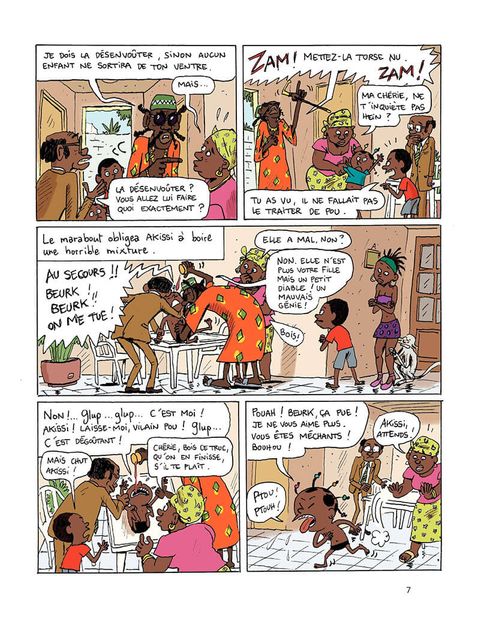 La maman d'Akissi, qui peine à avoir un autre enfant, fait appel au grand marabout du village pour l'aider. Mais ce « gros pou » de sorcier procède d'une manière bien étrange. Il accuse Akissi, la traite de petit diable et la force à boire une affreuse mixture pour la désenvouter. Une potion qui risque bien de la faire basculer dans un monde fantasme, en quête d'animaux qui parlent, de forêts magiques et de crottes guérisseuses !