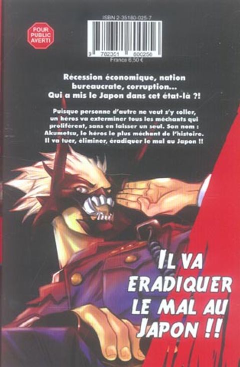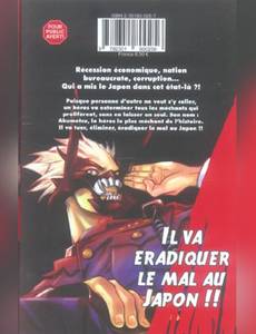 Dans un Japon frappé par la crise économique et secoué par des scandales politiques où plus personne ne veut se salir les mais sur le bien général, un héros se lève pour débarasser le monde du mal. Mais ce héros au masque inquiétant et aux pouvoirs étranges, emploie des méthodes pour le moins brutales... Un polar haletant dans lequel le justicier est un criminel recherché.