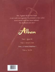 Alban n'est pas un moinillon comme les autres ! D'abord, il ne comprend pas tout... ou alors il fait semblant ! Il possède en effet sa propre logique, à la fois naïve et poétique... Et puis enfin, il vit ses aventures avec son meilleur ami, Laïus, mais aussi avec un goret, Orphéon... Un goret qui ne grandit pas : une volonté du Tout Puissant, d'après Alban ! Il faut dire qu'Alban évolue dans un drôle d'univers, un monde religieux très agité où l'on trouve pêle-mêle des Archevêques, des Archipapes, et des Inquisiteurs... Sans oublier les Hérétiques, des Anachorètes, le Peuple des Nains et même des loups-garous ! Non décidement, l'univers d'Alban n'est pas un Moyen Âge comme les autres ! Il est à déguster comme le plat préféré d'Alban, le brouet de corbeaux ! Fort en bouche, mais laissant un doux arôme au palais !